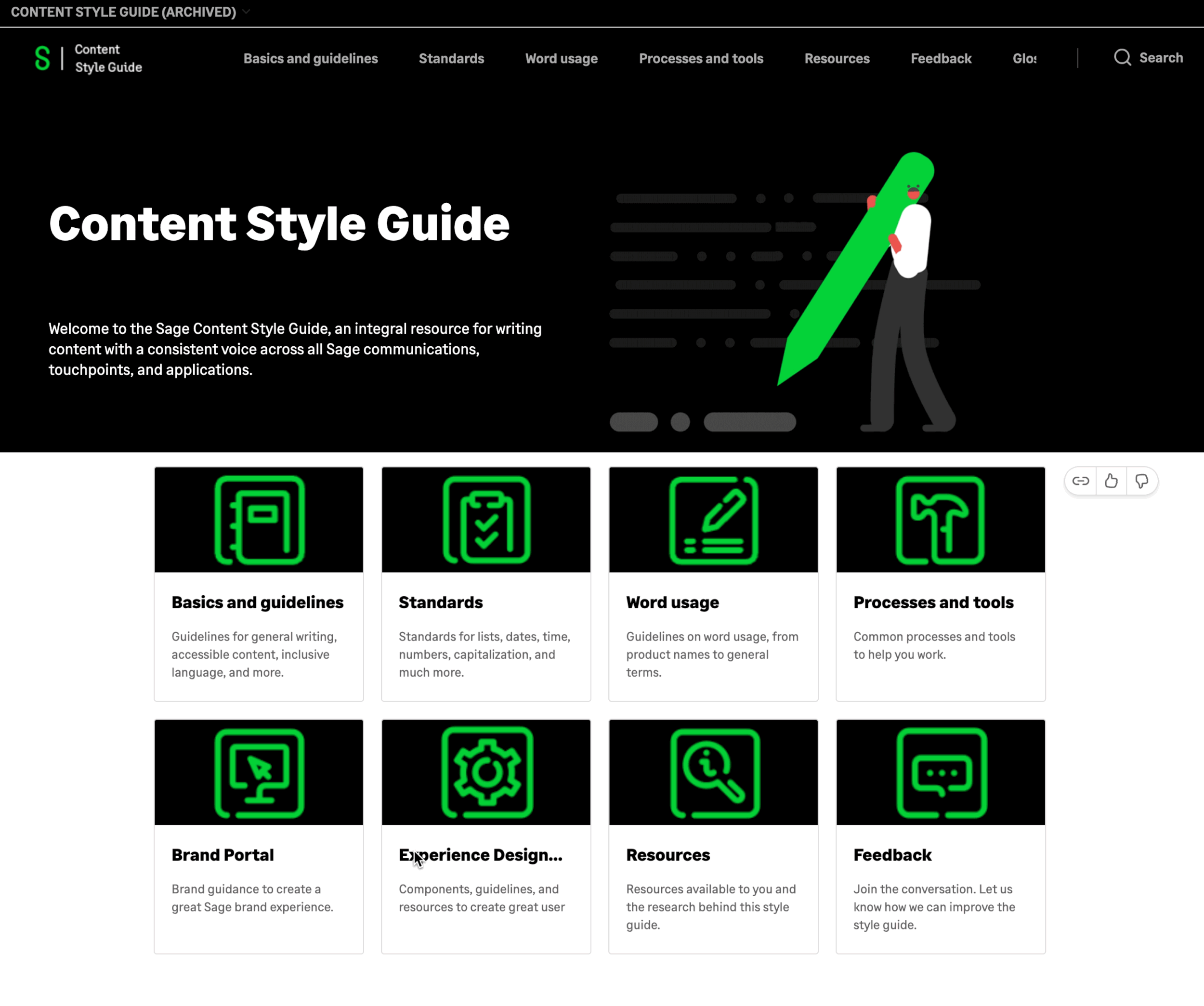 Sage employees have a one-stop shop experience for all content guidelines, including product UI content.